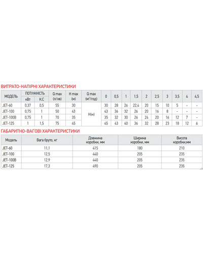 | Модель | JET-60 | JET-100 | JET-100B | JET-125 | |
