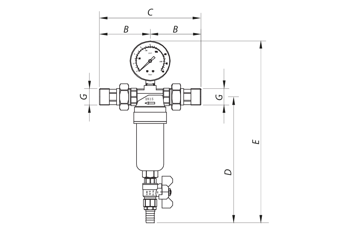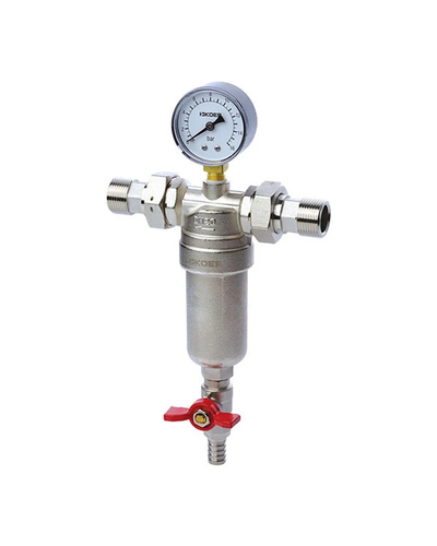 Передбачені дренажний кульовий кран зі штуцером для підключення шланга та манометр для контролю рівня забрудненості сіток.
