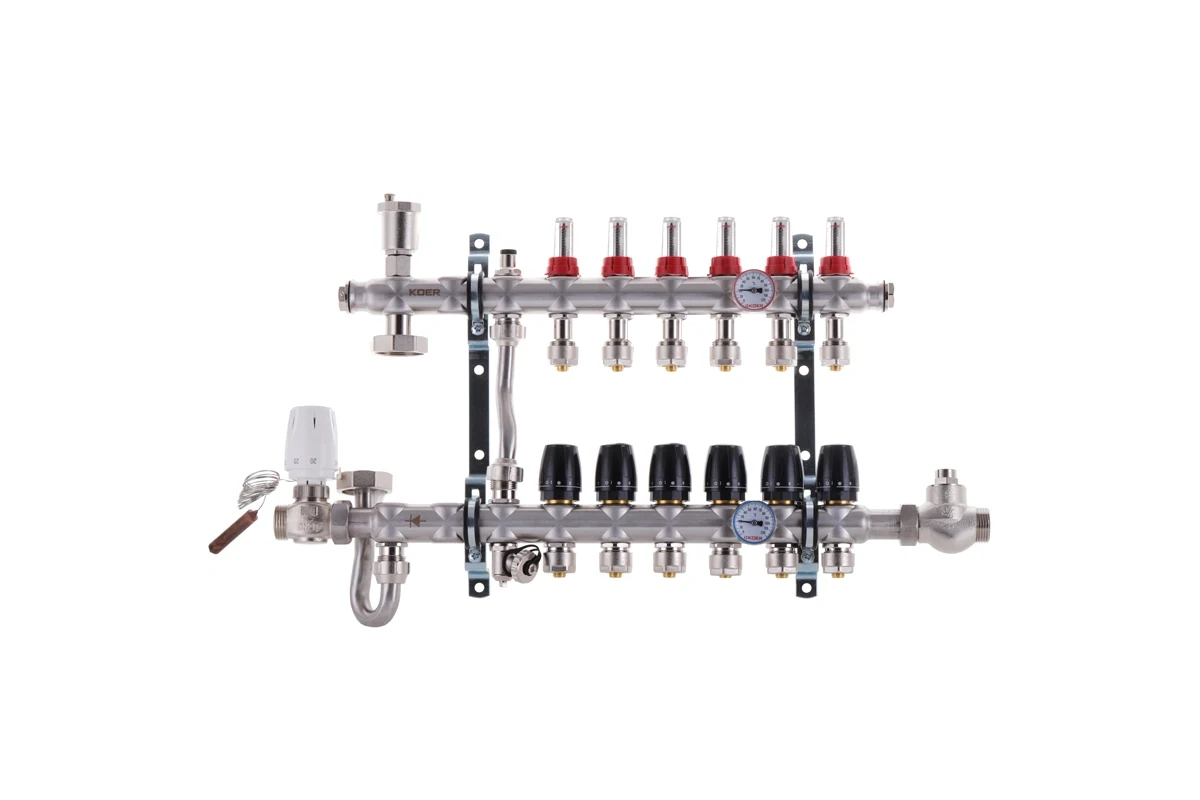 Арматура колектора KOER виготовлена з високоякісної сантехнічної латуні CW617N із нікелевим покриттям.
