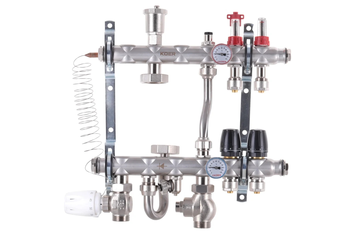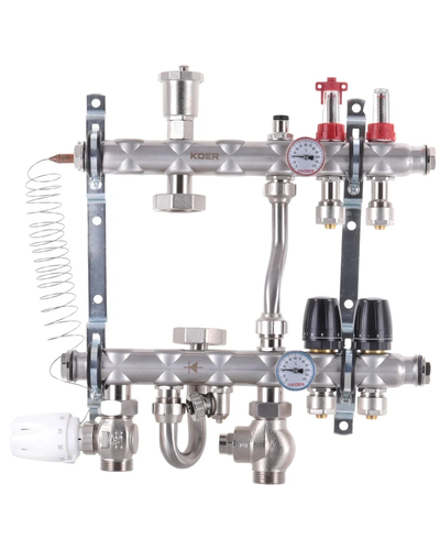 Арматура колектора KOER виготовлена з високоякісної сантехнічної латуні CW617N із нікелевим покриттям.