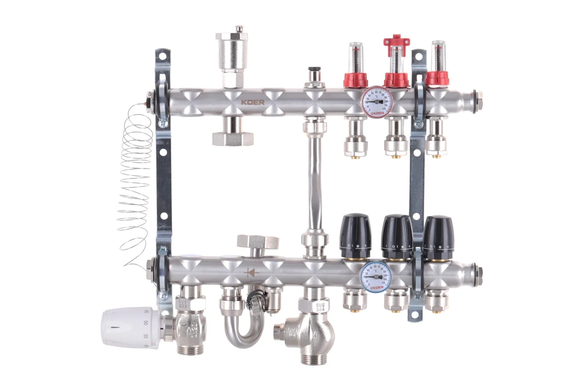 Арматура колектора KOER виготовлена з високоякісної сантехнічної латуні CW617N із нікелевим покриттям.