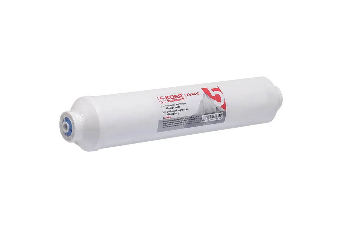 Вугільний постфільтр. Картридж з високоякісним активованим вугіллям покращує смак та запах, а також коригує рівень pH очищеної води.
