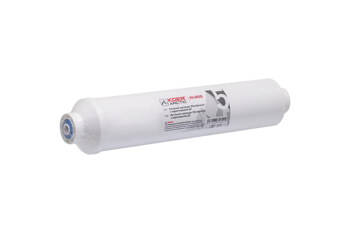 Постфільтр. Картридж із високоякісним активованим вугіллям покращує смак і запах, а також коригує рівень pH очищеної води.