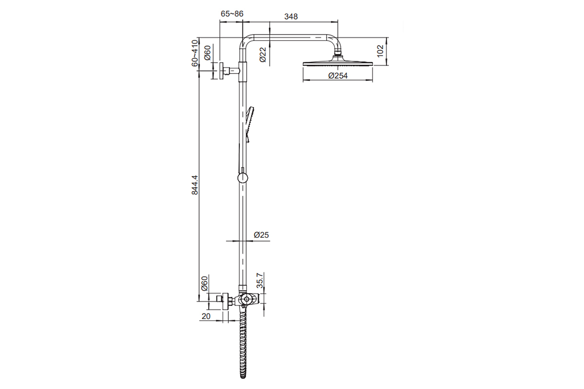 • Верхній душ: Ø254 мм