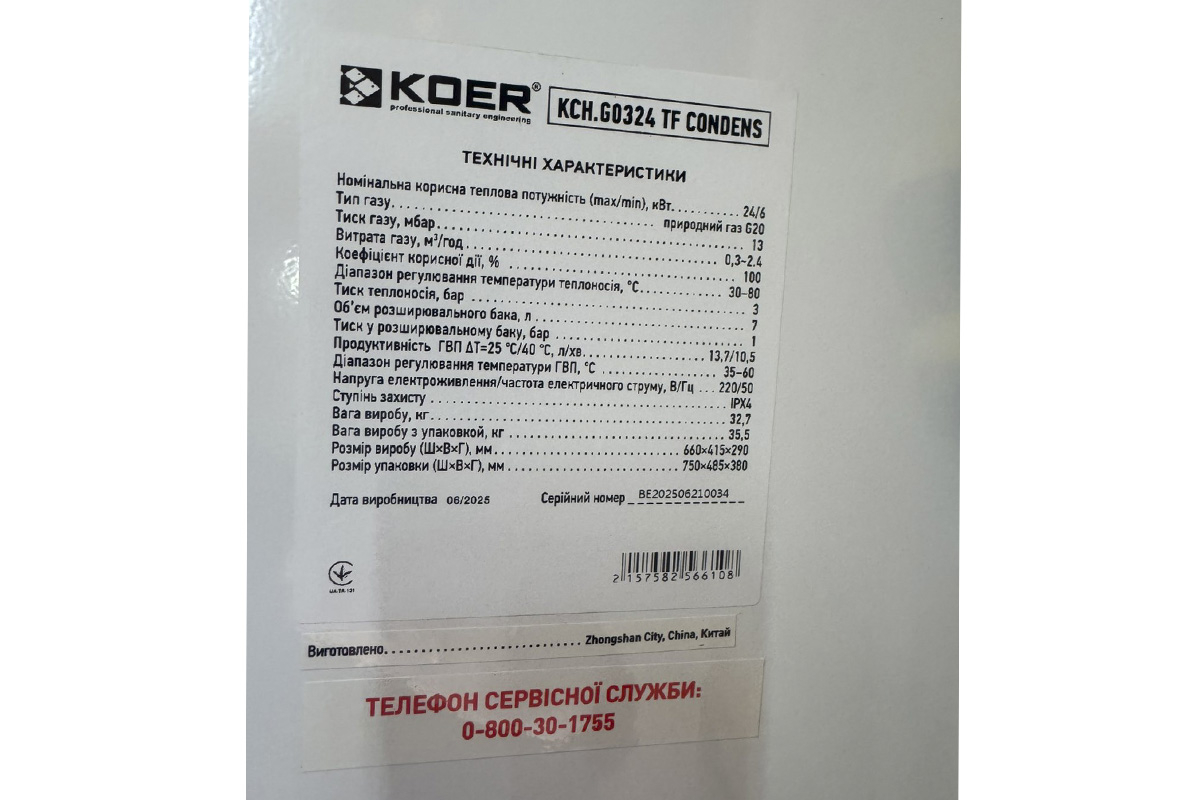 Гарантія виробника на котел газовий Koer