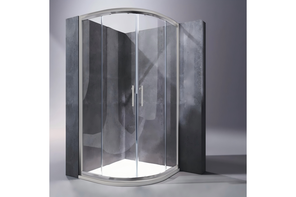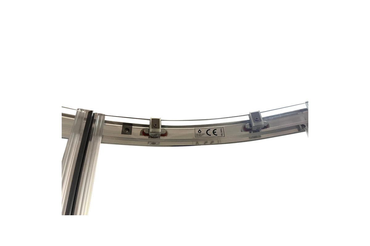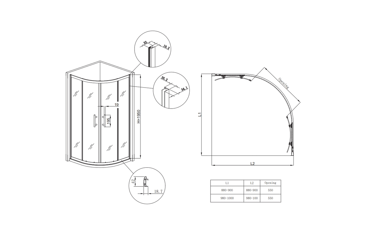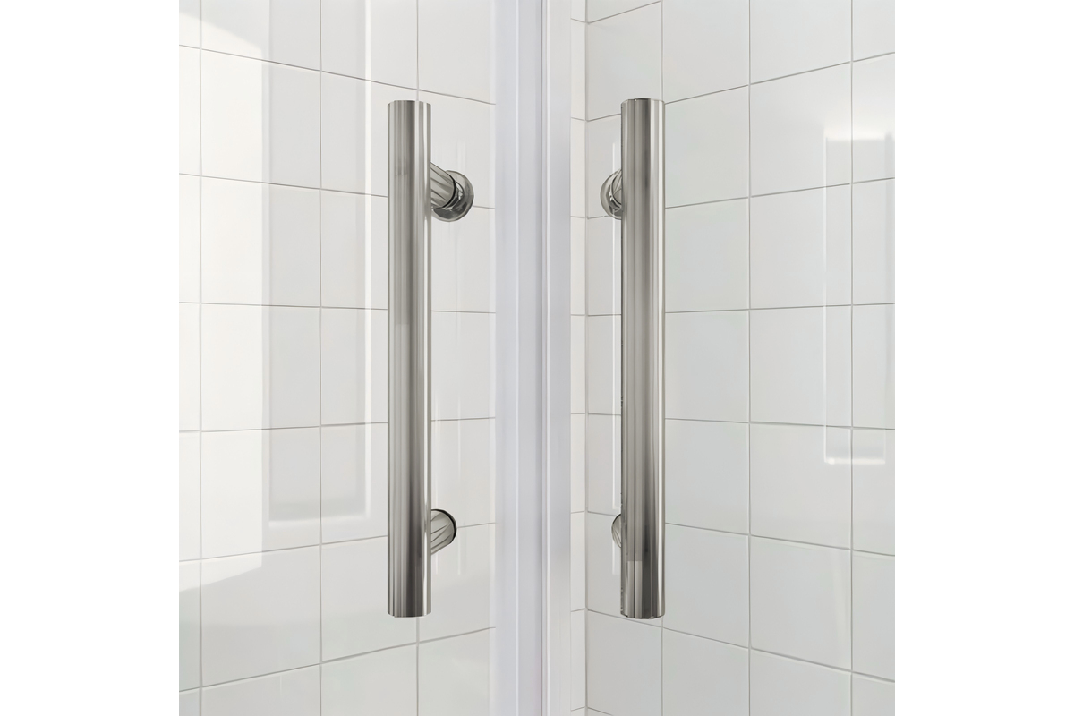 Упаковка 1/1. Глухе скло -2, скляні двері -2, профілі, направляючі, 2 ручки, подвійні ролики, комплект кріпильних деталей, набір ущільнювачів, заглушки.
