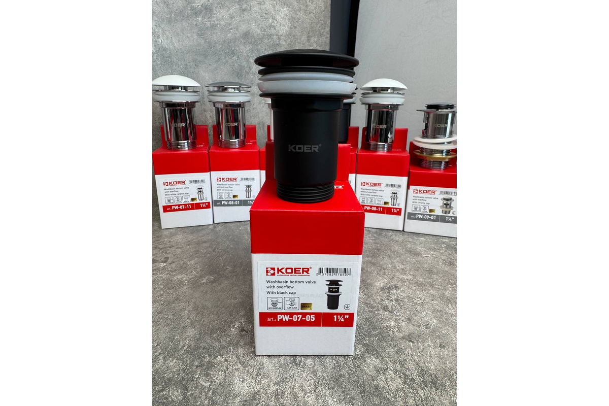 Відгуки про Донний клапан для раковини Koer PW-07-05 1.1/4 з переливом автоматичний Click-Clack чорний мат (KR5785)