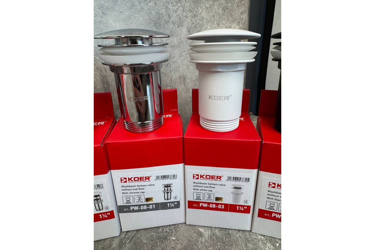 Питання та відповіді (FAQ) Донний клапан для раковини Koer PW-08-03 1.1/4 без переливу автоматичний Click-Clack білий (KR5787)