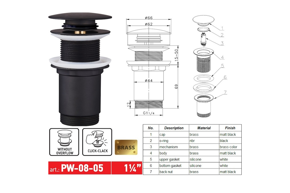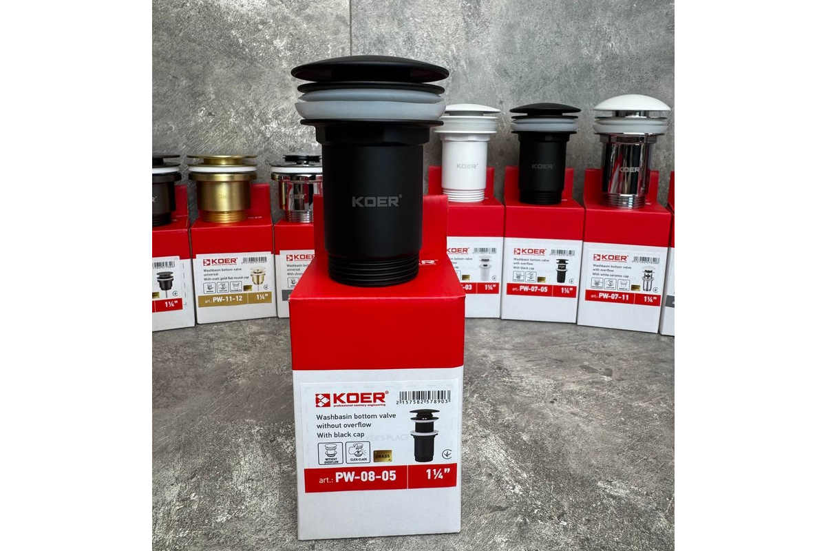 Відгуки про Донний клапан для раковини Koer PW-08-05 1.1/4 без переливу автоматичний Click-Clack чорний мат (KR5789)