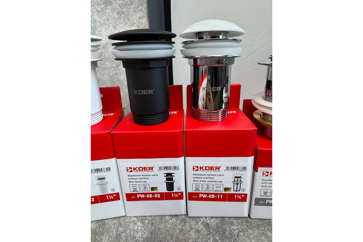 Питання та відповіді (FAQ) Донний клапан для раковини Koer PW-08-05 1.1/4 без переливу автоматичний Click-Clack чорний мат (KR5789)