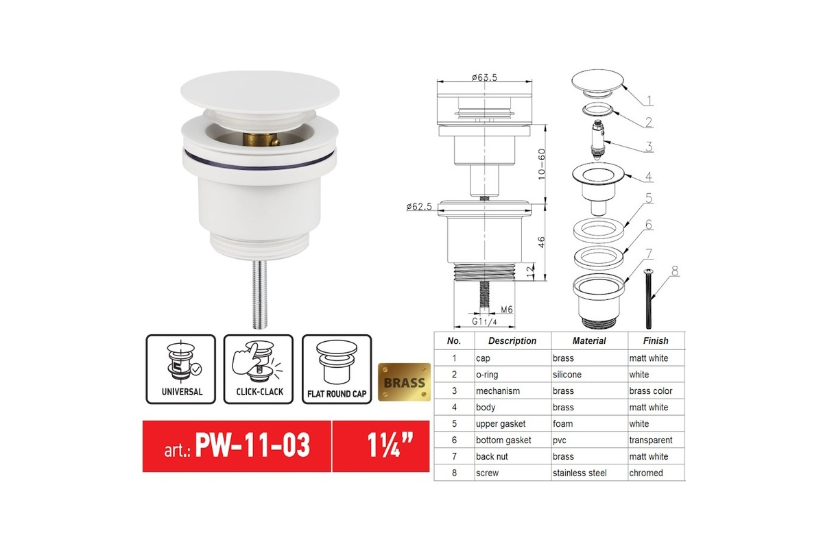 Питання та відповіді (FAQ) Донний клапан для раковини Koer PW-11-03 1.1/4 універсальний Click-Clack білий (KR5791)