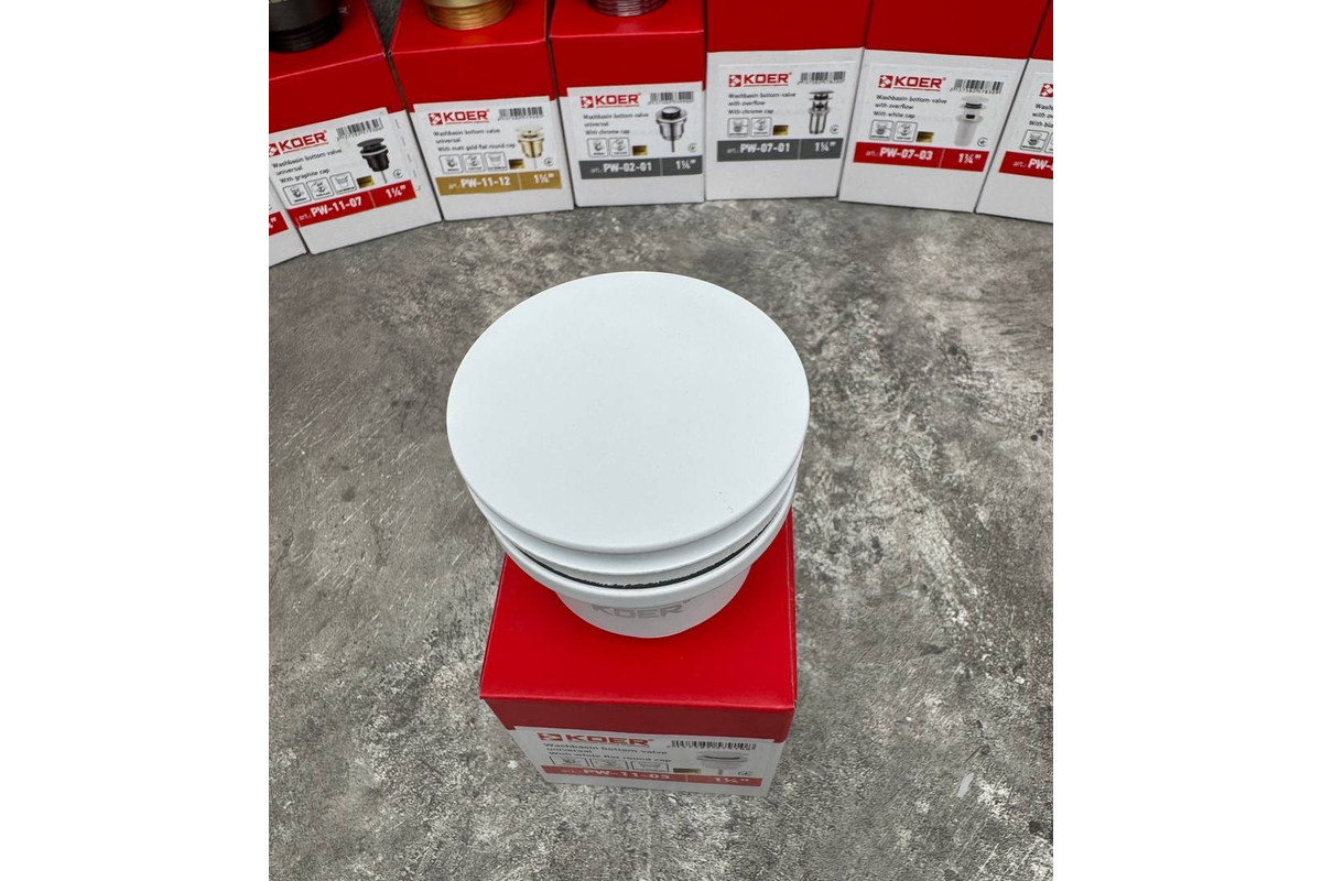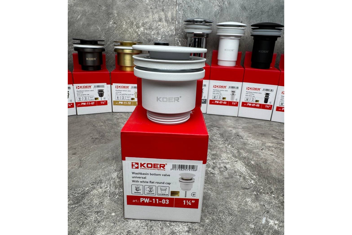 Донний клапан для раковини Koer PW-11-03 1.1/4 універсальний Click-Clack білий (KR5791)