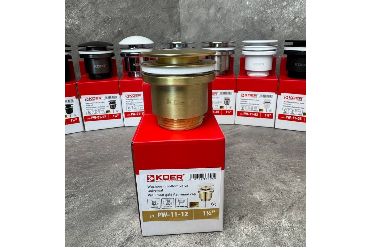 Донний клапан для раковини Koer PW-11-12 1.1/4 універсальний Click-Clack золото мат (KR5794)