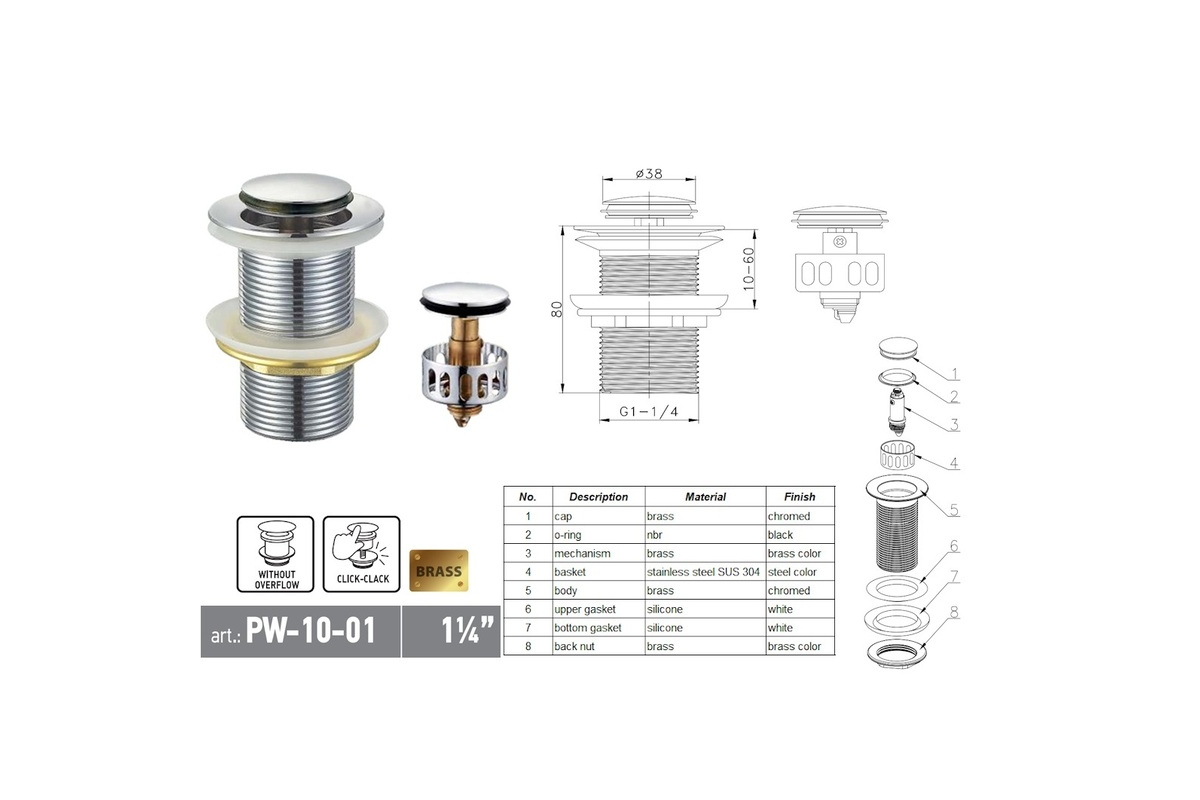Питання та відповіді (FAQ) Донний клапан для раковини Koer PW-10-01 1.1/4 без переливу автоматичний Click-Clack хром (KR5797)