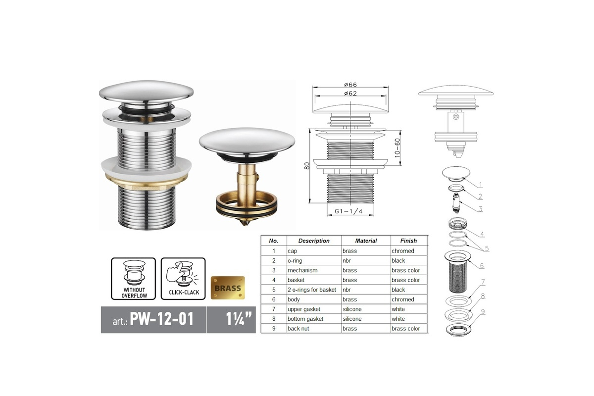 Питання та відповіді (FAQ) Донний клапан для раковини Koer PW-12-01 1.1/4 без переливу автоматичний Click-Clack хром (KR5798)