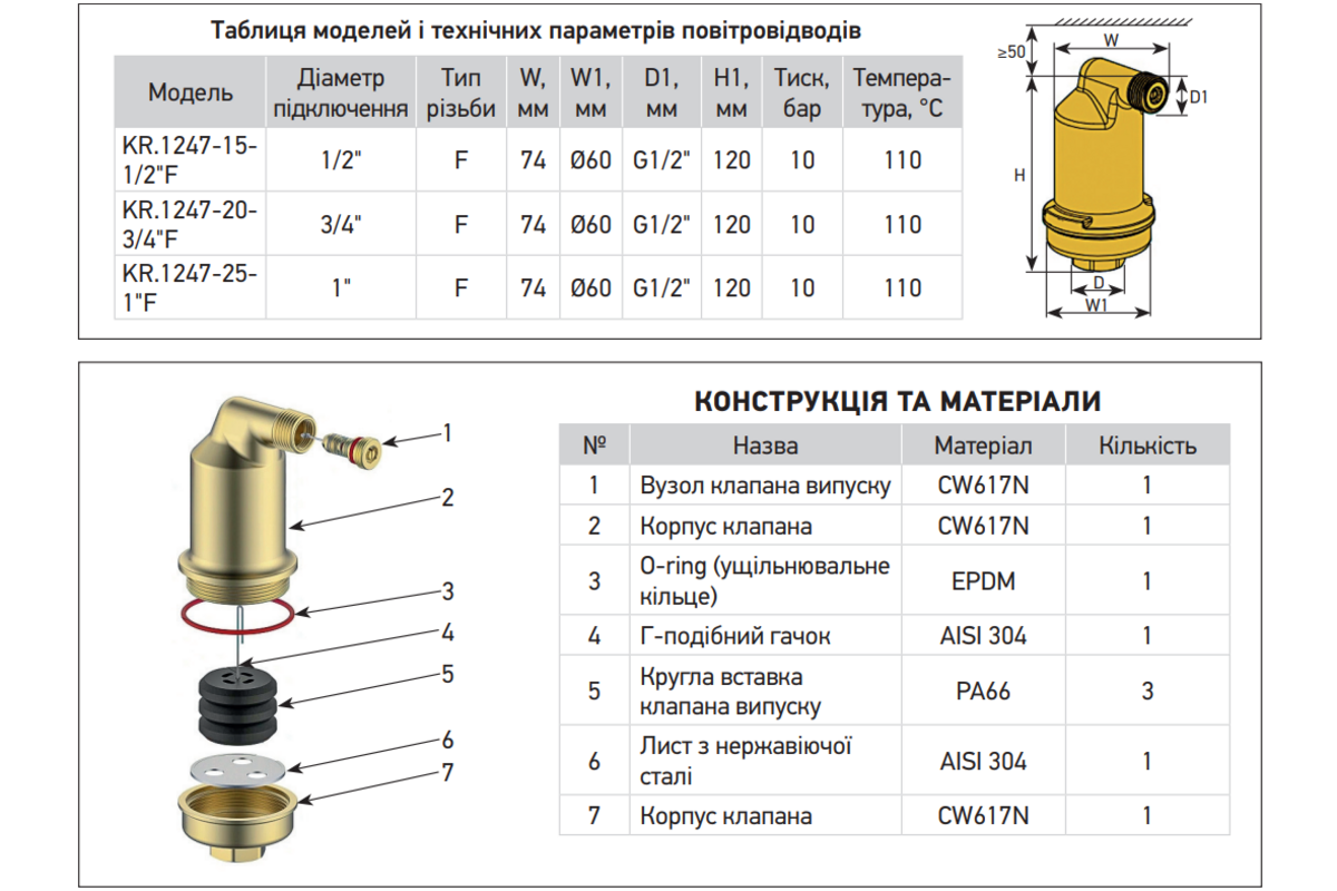 Повітровідвідник підходить для експлуатації в системах з максимальним робочим тиском до 10 бар і максимальною температурою середовища до 110 °C.