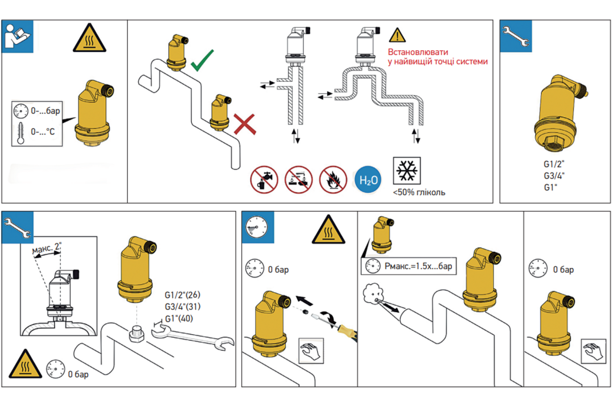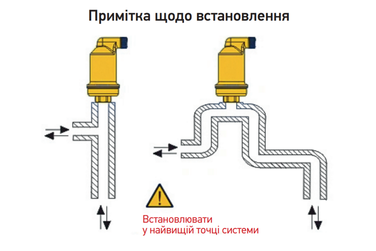 Важливо! Автоматичний повітровідвідник не призначений для газових і парових середовищ.