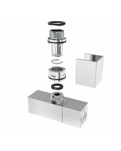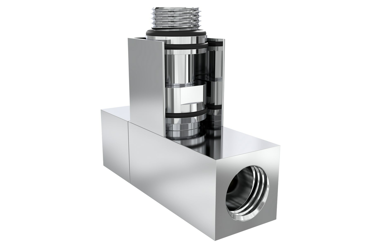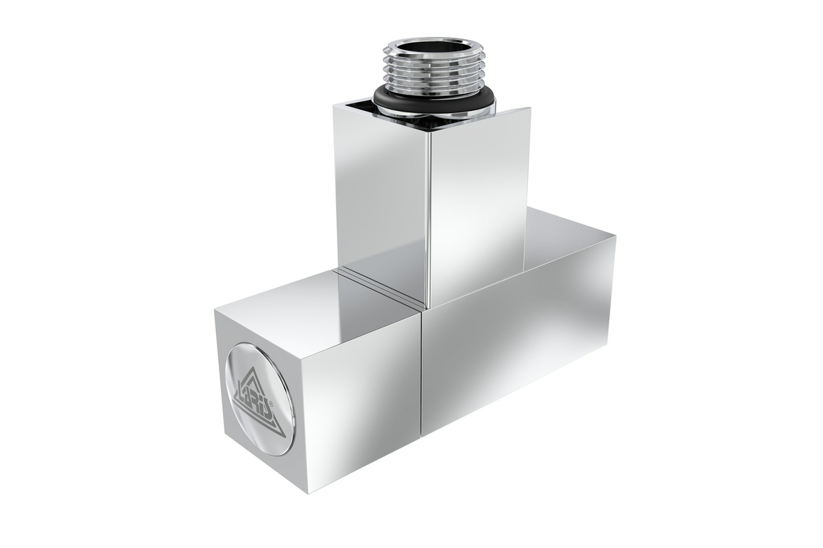 Даний кутовий вентиль LUXON відноситься до класу дизайн арматури. Він ідеально підходить для підключення водяних рушникосушарок з профілем, що мають квадратний перетин. Кутовий запірний вентиль призначений для регулювання температури в приміщенні, що відбувається шляхом часткового перекриття прохідного перерізу. При цьому кількість теплоносія, що проходить через рушникосушку змінюється - температура приладу знижується. Роз'ємні з'єднання (американки) в квадратному вентилі заховані за знімною накладний панеллю з квадратного профілю.