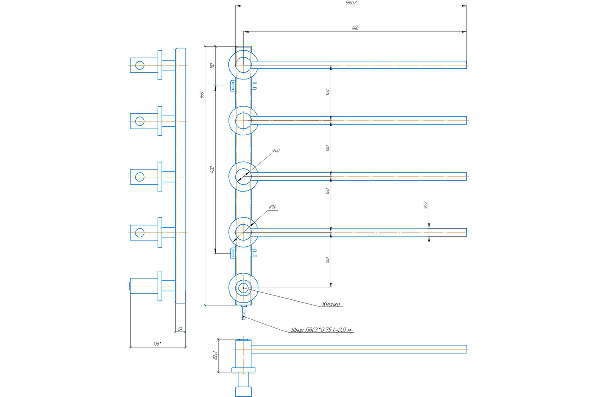 - Максимальна температура нагріву 55°C, ефективна для сушіння рушників, безпечна для дотику.