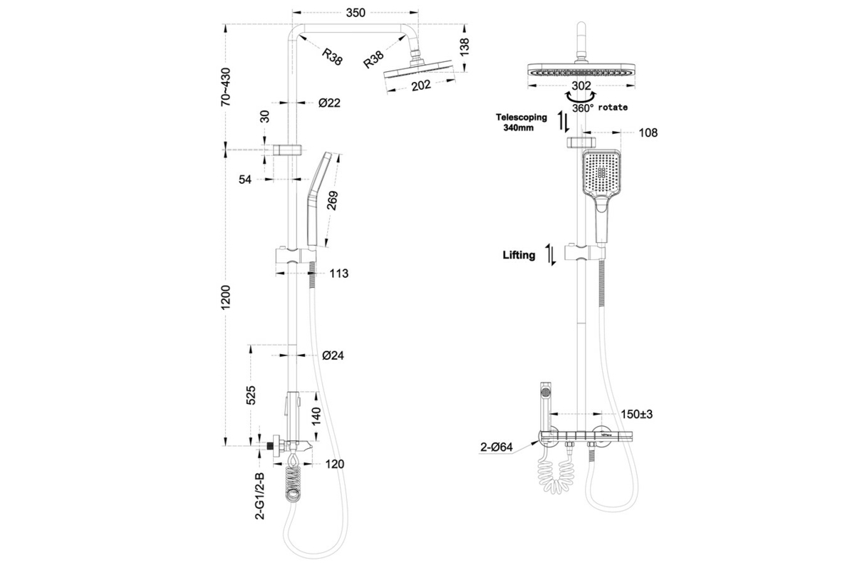 Душова система зі змішувачем Mixxus Premium Riviera 009-J з кнопкою перемикання, 4 режими (MI6834)