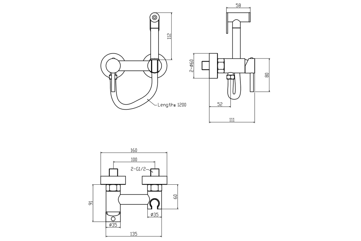 Комплектація Гігієнічна лійка, корпус, душовий шланг, ексцентрики