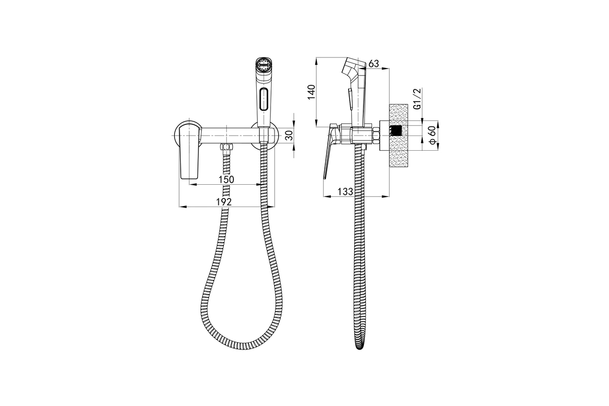 Комплектація Гігієнічна лійка, корпус, душовий шланг, ексцентрики