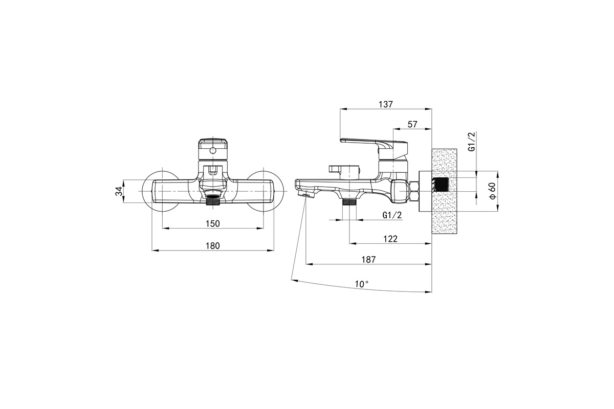 MAX різниця тиску гарячої та холодної води, бар 1,50