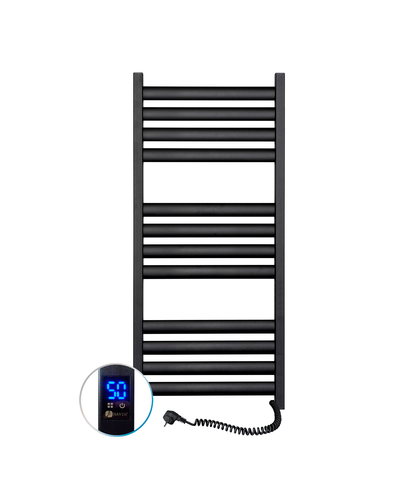 Рушникосушка Ellipse 500х1200 Sensor (колір — чорний муар; розташування шнура з вилкою — праворуч) від українського виробника NAVIN виготовлена з вуглецевої сталі, яка відрізняється високою якістю й міцністю. Модель має надійне порошкове покриття. Товщина стінки колекторів (стійок) і перемичок сушарки дорівнює 1,5 мм.