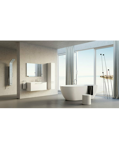 Нобор меблів та умивальників з литого мармуру дозволяє комбінувати їх з іншим обладнанням для ванних кімнат. Проста, але в теж час стильна форма підкреслена закругленими краями. В такому ж стилі оформлені і дзеркала для ванних кімнат.