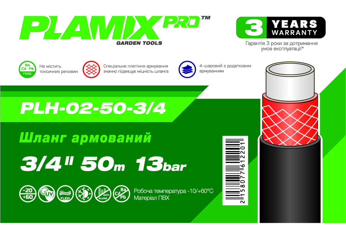 Шланг садовий армований Plamix Pro 3/4 13bar PLH-02-50-3/4 (бухта 50м) PM6122