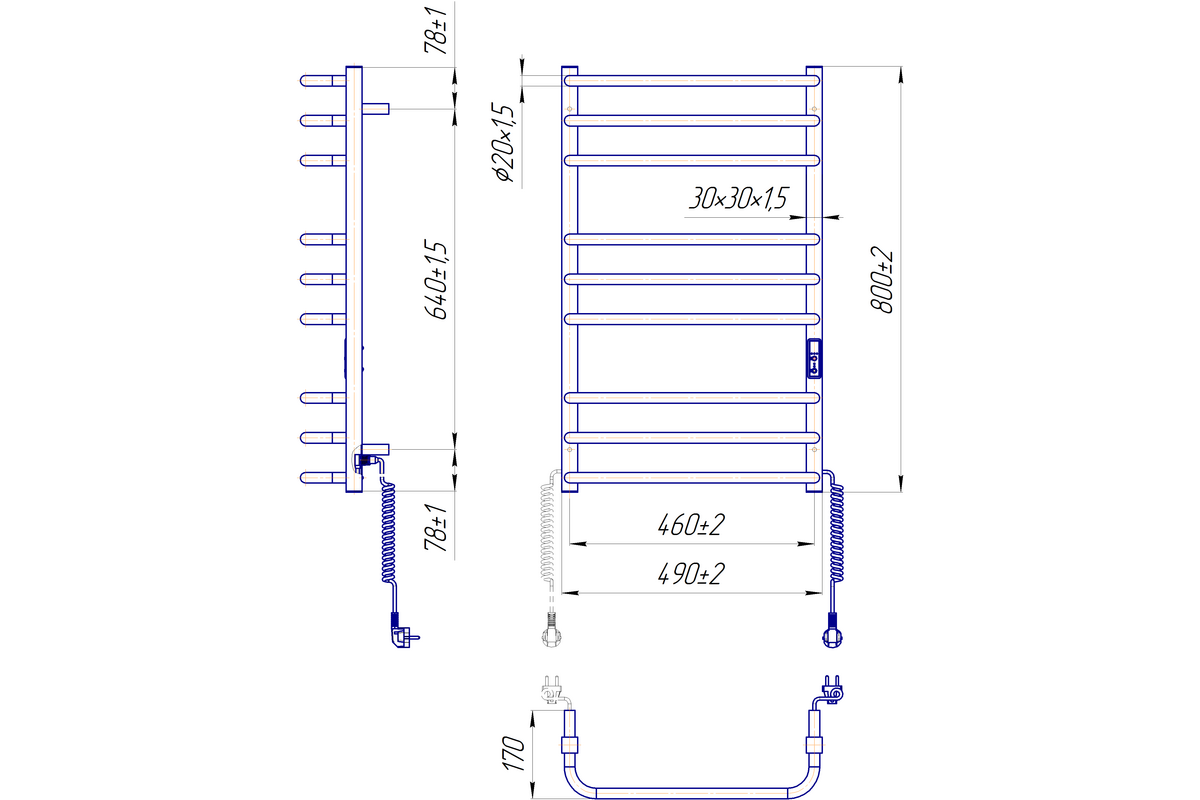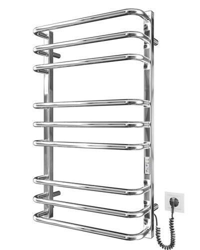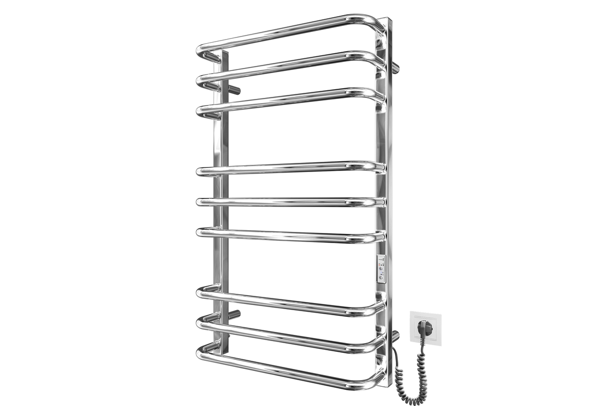 Замість звичного шнура з фіксатором в конструкції виробу присутні роз’єми на обох стійках, що дозволяють підключити рушникосушарку до мережі живлення з будь-якого боку.