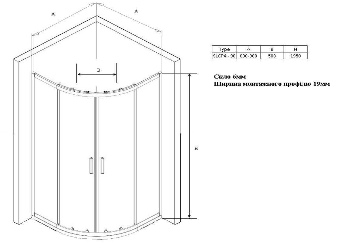 Душовий куточок напівкруглий розсувний, чотирьох елементний SLCP4.