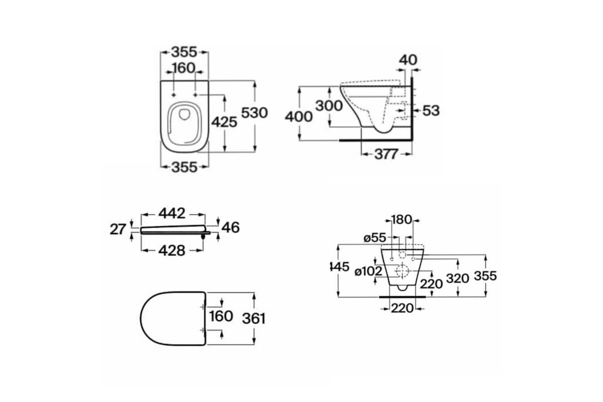 AIROS Rimless підвісний унітаз з технологією змиву Vortex, з сидінням із системою плавного опускання, швидкознімне
