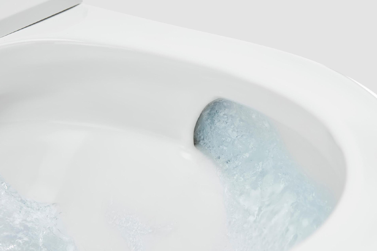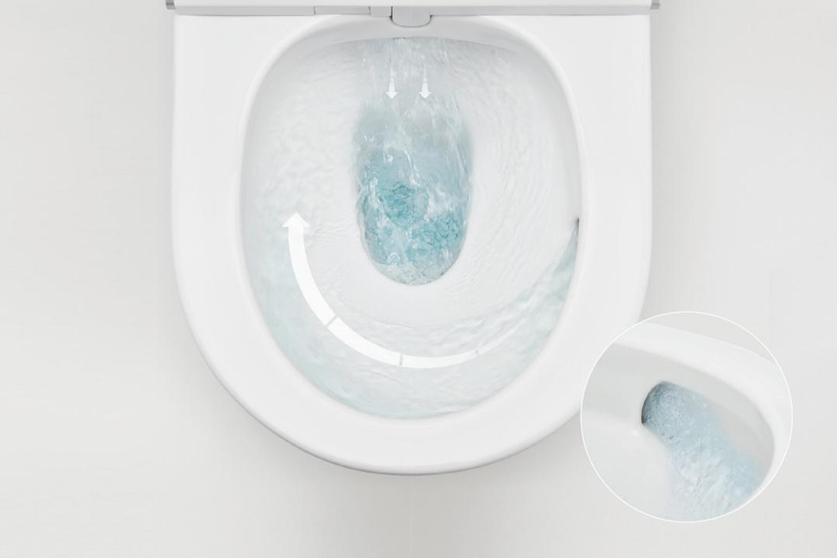 Завдяки Roca Rimless® Vortex вода утворює на поверхні чаші закручений потік на 360 градусів.