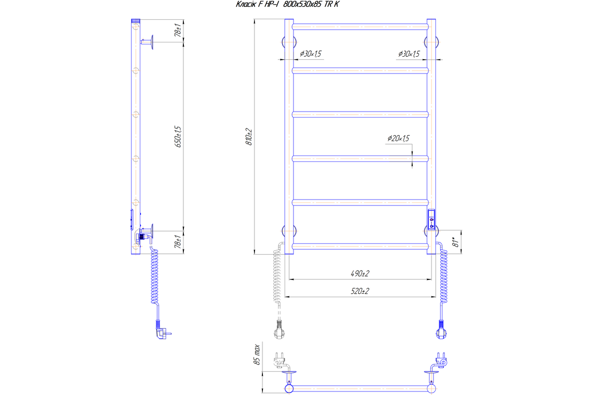 Електросушарка для рушників побутова Класік F НР-I 800х530/75 TR K. Обладнана таймер-регулятором та конектором для підключення в розетку з будь-якого боку. Сумісна з комплектом прихованого підключення. Має 6 ребер та стояки з круглої труби. Виготовлена з полірованої нержавіючої сталі без хромування. Варіанти покриття: полірована або сатин, чорний мат, білий глянець, бронза, золото. Температурні режими таймер-регулятора: 40°С, 45°С, 50°С. Варіанти часу роботи: 3, 6 годин та постійний нагрів. Потужність 100 Вт. Додатково для зручності користування можна оснастити навісними гачками. Гарантія - 5 років. Виробник залишає за собою право, без попереднього погодження із покупцем, вносити зміни в зовнішній вигляд та відтінок кольору таймер-регулятора. Такі зміни не впливають на основне, функціональне призначення таймер-регулятора в цілому.