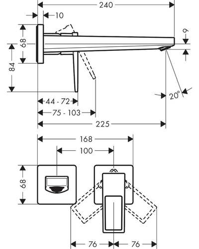 C можливістю розміщення рукоятки праворуч або ліворуч, виступ 225 мм, звичайна струмінь, витрата води: 5 л/хв. Універсальне розміщення системи змішування за вибором ліворуч або праворуч від виливу, зливний клапан, підходить для проточних водонагрівачів.
