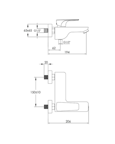 Змішувач для ванни Картридж 35 мм, одноважільний Керамічний вузол змішування від Sedal, Іспанія Витрата води: 22 л/хв Аератор від Neoperl, Німеччина Підходить для проточних нагрівачів Додаткова комплектація: лійка і шланг (у комплект не входять) Матеріал корпусу: латунь Поверхня: хром Розмір: 206х194х170 мм