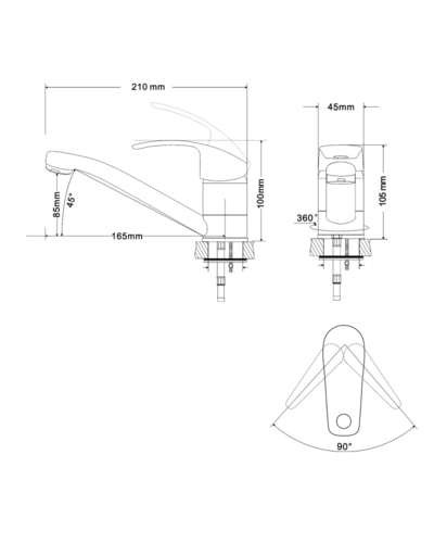 BARON змішувач для кухні одноважільний, поворотний вилив 160 мм, хром 40мм
