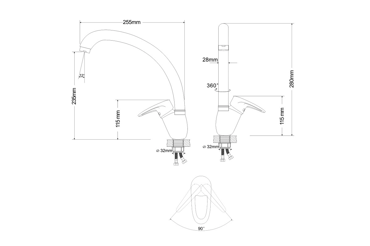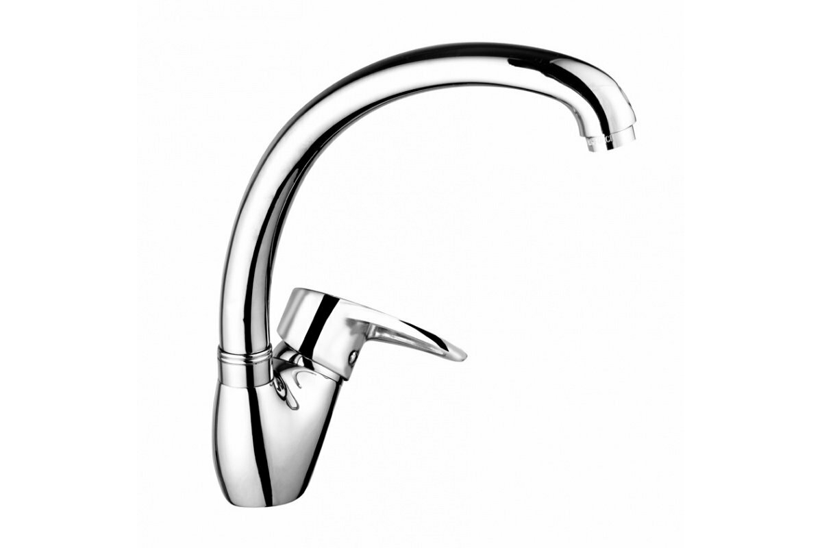 Одноважільний змішувач для кухні, хром, поворотний високий вилив. Матеріал - латунь.