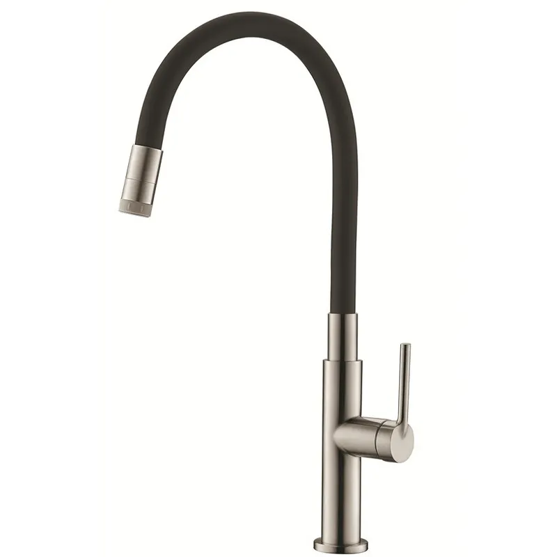 Змішувач для кухні Koer KI-70032-02 з нерж. сталі SUS304 (нерж+силіконовий вилив чорний) (KR5548)