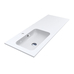 Умивальник з крилом DELLA 1200 L. Чаша умивальника розташована зліва, що дозволяє розташувати під умивальником пральну машину або просто містку тумбу. Ширина умивальника 120 см. Раковина з крилом виготовляється зі штучного мармуру, тому є дуже міцною та практичною у повсякденному житті.