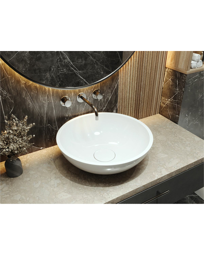 Накладний умивальник Palermo Gloss, що має вигляд круглої чаші є прекрасним варіантом для класичного оздоблення ванної кімнати. Своїм стилем він надає розкішний вигляд і шик у ванній.