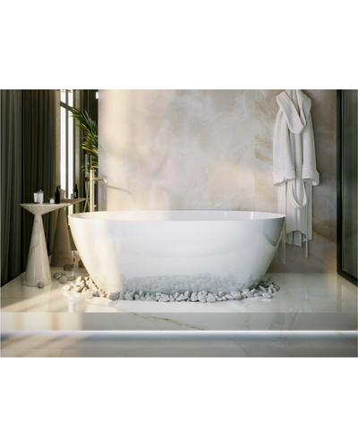Матеріал для ванни - литтєвий мармур, який є поєднанням найвищої якості смол з мармуровою крихтою. Такий матеріал дозволяє створювати складні форми і вигини. Ванни характеризуються дуже високою твердістю, стійкістю до фарбування і подряпин, високою міцністю при перепадах температур. Головна перевага ванн з литого мармуру - це теплозбереження, вода тримає температуру набагато довше, ніж ванни з іншого матеріалу.