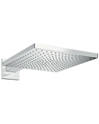 Розмір головки душа: 300 x 300 мм довжина рукава для душу: 390 мм Тип розпилювача: RainAir Витрата потоку RainAir (при 0,3 МПа): 19 л / хв повністю хромований спрей-диск розпилювальний матеріал диск: метал змінний диск для очищення установка: стіна з'єднувальна різьба G ½ розмір з'єднання: DN15. Матеріал: латунь.