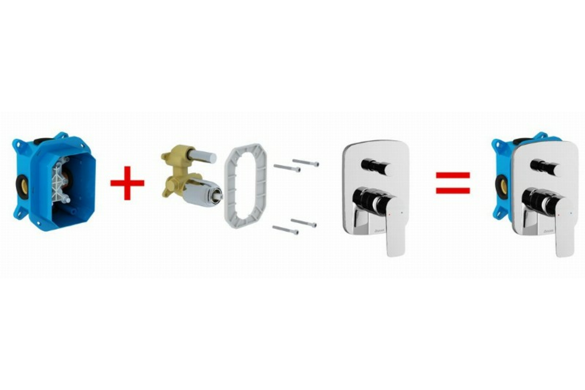 RB 070.50 Вбудовуваний механізм, який зводить до мінімуму ризик пошкодження змішувач прихованого монтажу при монтажі або неправильному встановленні в стіну. Робота по установці основного корпуса менш трудомістка, більш швидка і результат її значно краще. Пластиковий корпус захищає внутрішню частину змішувача при вбудовуванні в стіну, а також полегшує всі маніпуляції.