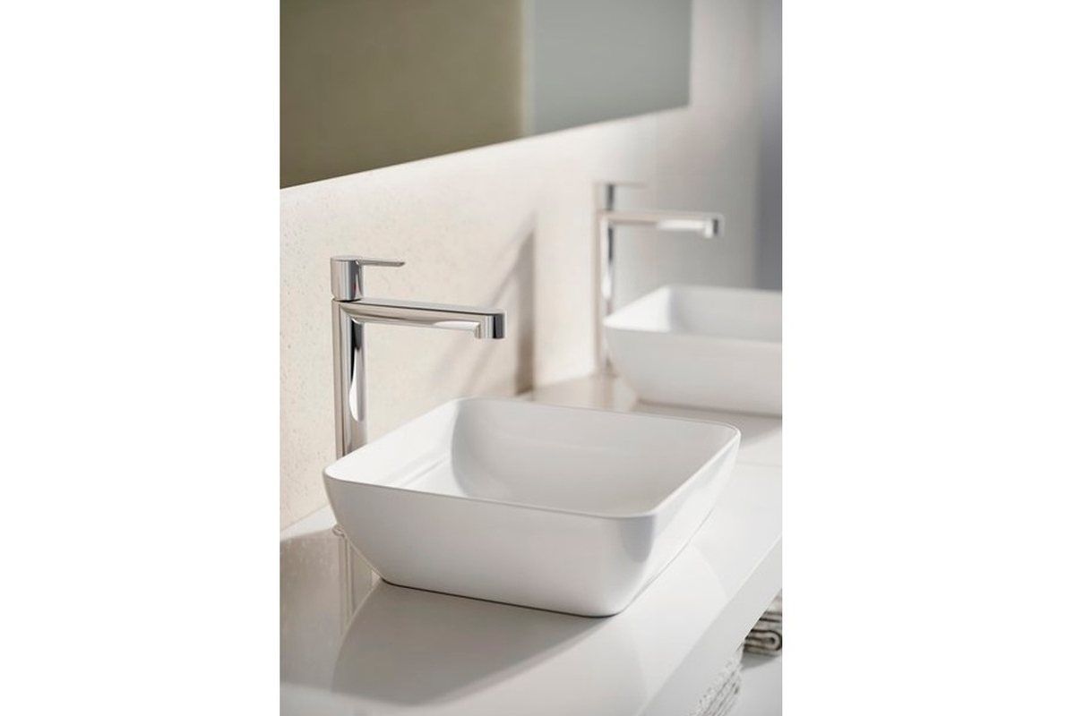 Умывальник UNI изготовлен из высококачественной керамики и предназначен для установки только на столешницу под умывальник в форме L или в форме I или для установки на подвесную тумбу со столешницей SUD 260.01. Умывальник должен сочетаться с фиксированным сливом, который предотвращает переполнение воды. С умывальнком UNI мы рекомендуем на столешницу устанавливать высокие смесители Chrome CR 015.00 высотой 311 мм или смеситель 10° TD 015.00 высотой 334 мм.