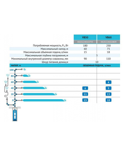 Электронасосы серии VB – это бытовые погружные вибрационные электронасосы. Предназначены для подачи чистой воды из колодцев и скважин, а также из водоёмов и накопительных ёмкостей. Используются в системах полива садов и огородов.