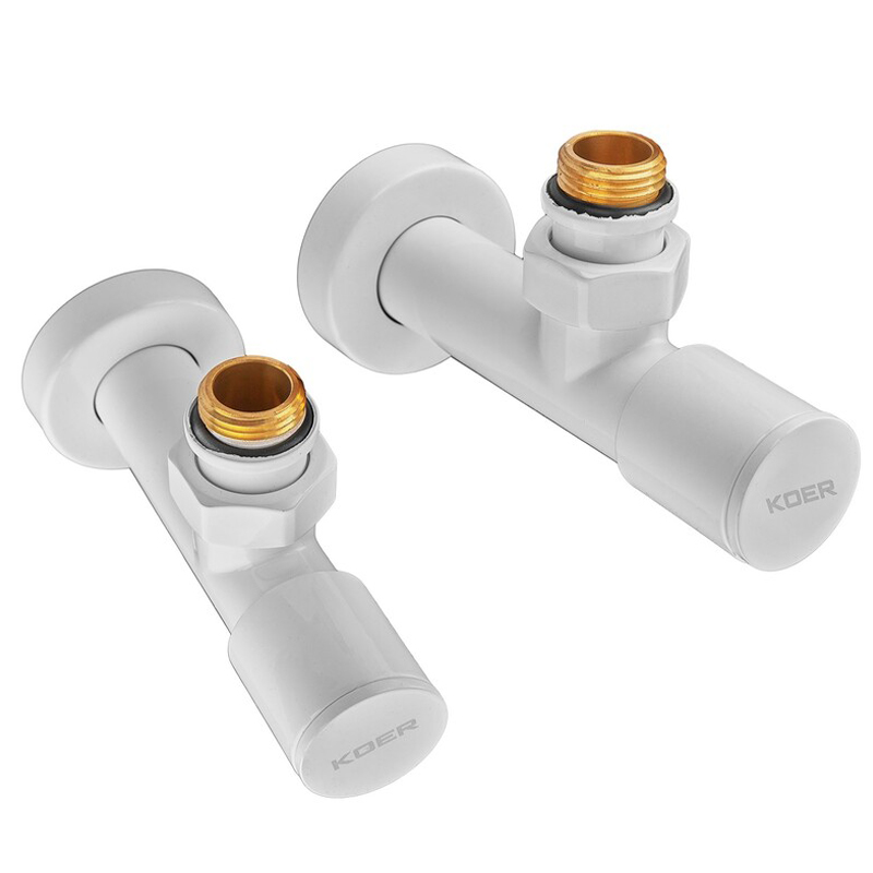 Комплект кранов для полотенцесушителя угловой Koer KR.SET.534 WHITE - M1/2xM1/2 удлиненный белый (KR5843)