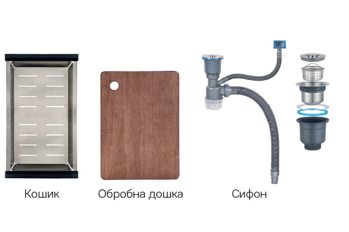 Мойка Zerix ZH6845-SET-05 NANO-BLACK (3.0/0.8) с нерж. стали, комплект (графит) (ZM5579)
