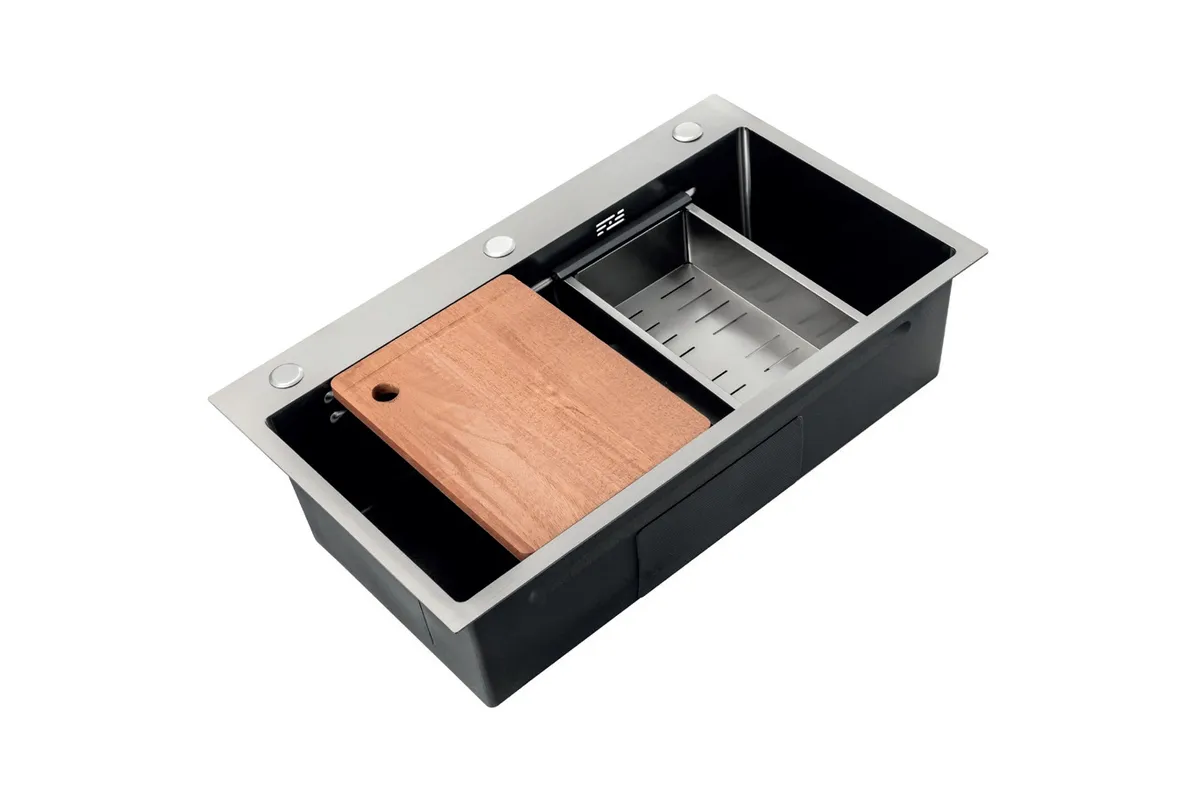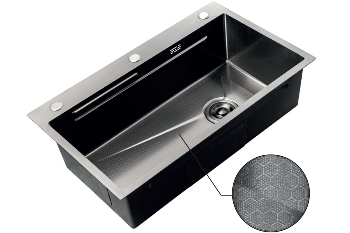 Мойка Zerix ZH7545-SET-05 DECOR NANO-BLACK (3.0/0.8) с нерж. стали, комплект (графит) (ZM5582)